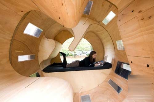 旋转它,这是一个非常酷的试验小屋,它由来自于卡尔斯鲁厄大学不同部门协会间的相互合作构造而成。这个环形旋转的模块房屋,在最小限度的单元内提供了灵活的活动空间。三个不同的部分对应三种不同的功能需求:床和桌子是一个部分,一个旋转圆筒,一个厨房以及一个水池。这似乎恰好印证了中国的风水轮流转。
