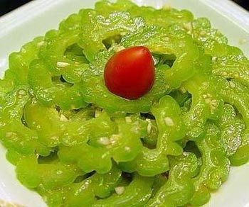 常见的家常菜式有“凉瓜炒田鸡”、“凉瓜排骨”、“酿凉瓜”。最简单的是煮苦瓜汤:取鲜苦瓜半斤,去瓤切块,加瘦肉100克切块,放锅内加适量水同煮,熟后加适量盐调味食用。此汤有清热解暑之效。