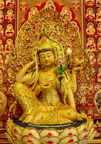 大悲咒,是观世音萻萨的大慈悲心,无上菩提心,以及济世渡人,修道成佛的重要口诀。其中一字一句都包含著正等正觉的真实工夫,没有一丝一毫的虚伪。本咒是观世音菩萨「大悲心陀罗尼经」中的主要部份,共有八十四句。其详名为:「千手千眼观世音菩萨广大圆满无碍大悲心陀罗尼经大悲神咒。」其得名的由来是:有一次佛陀告诉阿难尊者说:「如是神咒,有种种名:一名广大圆满、一名无碍大悲、一名救苦陀罗尼、一名延寿陀罗尼、一名灭恶趣陀罗尼、一名破恶业障陀罗尼、一名满愿陀罗尼、一名随心自在陀罗尼、一名速超十地陀罗尼。」它的被称为千手千眼观世音菩萨的因由是:有一次他曾经在千光王静住如来住所时,静住如来特为了他说了「广大圆满无碍大悲陀罗尼」,并且对他说:「善男子汝当持此心咒,普为未来恶世一切众生作大利乐。」据经的记载:当时观世音菩萨听了此咒后,即由初地证至第八地--不动地。於是发出誓愿说:「设我当来之世能利乐一切众生者,令我即时身生千手千眼具足。」如此发愿后,果真顿时身生千手千眼,并且十方大地为之震动,十方诸佛亦都放出无量光明,遍照十方的无边世界。至于本咒所以有种种异名,释尊曾经告诉阿难说:这是起因於观音菩萨的宏愿。菩萨曾在世尊处发誓说:「设若诸人天诚心念我名者,亦应念本师阿弥陀如来名,然后诵此陀罗尼神咒。如一夜能持诵五遍,则能除灭百千万亿劫生死重罪。设若诸人天诵持大悲章句者,即於临命终时,十方诸佛皆来授手接引,并且随其所愿往生诸佛国土。设若诸人天诵持大悲心咒者,十五种善生,不受十五种恶死。」因此大悲咒,不但能除一切灾难以及诸恶病苦,且能成就一切善法远离一切怖畏,所以我们应以十分虔敬的信心与清挣心去受持它,方能契合菩萨的大悲心,获得无上的利益。沉沦在三界五趣众生,果能经常持诵大悲咒,不但能治一切心病与身病,且能由此超脱生死轮回,愿众生齐诵本咒,同证佛果。