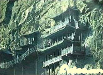 悬空寺的木头用桐油泡过,这样使它能够1000多年以来仍然坚实地插在岩石上当时工人们首先要把横梁布置完成。