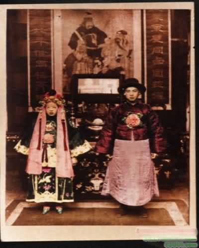 大家应该看过这张照片了吧?有些人不知道它为何而恐怖,只是看上去有些怪异,其实这张结婚照真的很令人恐怖的,它里面人的表情和照片中的颜色以及背景都是很怪异很阴深的。大家要这样看这张照片,点击鼠标右键,把照片另存为你的任意文件夹内,然后用照片浏览器看,在那里你把这张照片放大几倍,然后你仔细的注意那个女人的双脚!你看她是不是没有腿?是不是悬的?还有你慢慢往上拉,你再看看放大了的那个女人的脸,她那向上翻的眼睛!你会发现什么呢?对!这是上吊死时的样子!还有,你往后看那个镜子,里面朦胧的东西其实是他们的遗像。你再把照片缩小来整体看那个女人的服饰和那个帽子,象不像给死人烧的纸人?!还有就是右下角有个水印似的人头,你可以把他放大来看。最后我要让大家注意的是那个女人的右手,没有右手!不要害怕,因为他们都是死人,因为他们的脚下都没有影子.......